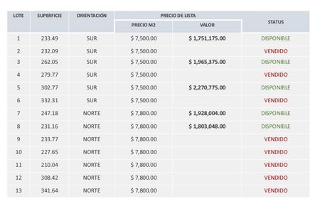 Lotes en venta $7,500 pesos por m2.
