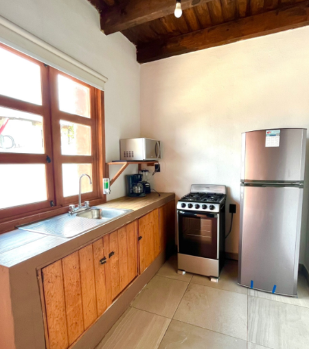 + Area de Sala con chimenea, comedor y cocina equipada.