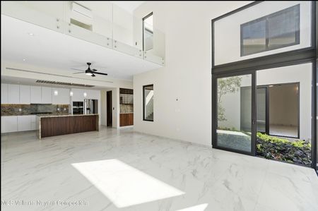 Ingrese a esta nueva villa de 2 pisos, diseñada meticulosamente, donde los acabados de calidad se combinan con el lujo moderno. La casa está diseñada cuidadosamente con exquisitos detalles de madera de Parrota en todas partes, incluida la cocina, las puertas, los armarios y los gabinetes del baño. La gran entrada impresiona de inmediato con un pasillo de dos pisos y una vista impresionante del vibrante patio interior, lleno de plantas coloridas que realzan su primer paso hacia la casa. Diseñada para la máxima privacidad, la villa ofrece el santuario perfecto para la relajación al tiempo que invita a la abundante luz natural durante todo el día, creando un ambiente espacioso y aireado.