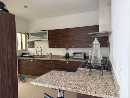 Cocina equipada con barra desaynadora, salida al cuarto de lavado , patio y acceso lateral
