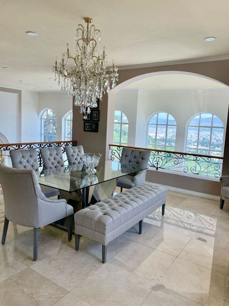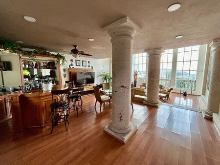 PB: COCHERA PARA 4 VEHICULOS, INGRESO ESCALONADO, MEDIO BAÑO PARA VISITAS Y AREA DE BODEGA, AMPLIA SALA Y COMEDOR CON VISTAS A LA CIUDAD, COCINA INTEGRAL CON BARRA DESAYUNADORA CON ACABADOS EN GRANITO
