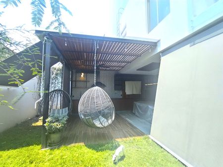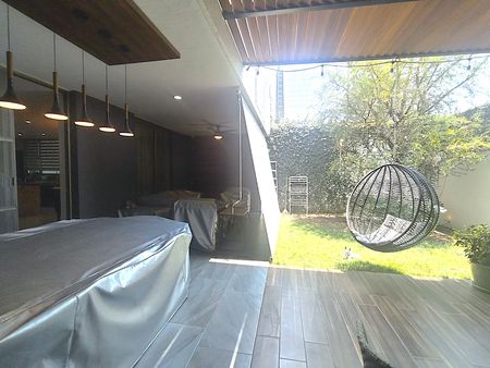Destaca por sus acabados de lujo y un diseño moderno. Cuenta con 3 lugares de estacionamiento, además de facilidad para estacionarse en la zona. Disfruta de un jardín, asador y terraza, perfectos para el entretenimiento.