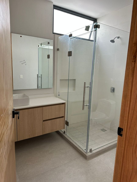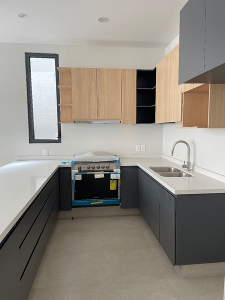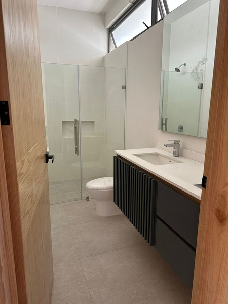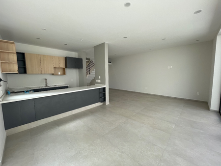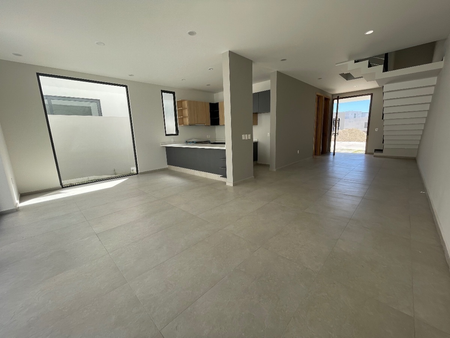 Planta baja estudio con baño completo, entrada independiente, sala-comedor, cocina con barra, jardín, planta alta, 3 recámaras con baño cada una y vestidor en principal, closet de blancos, área de lavado, roof garden con baño completo y estacionamiento para 2 autos.